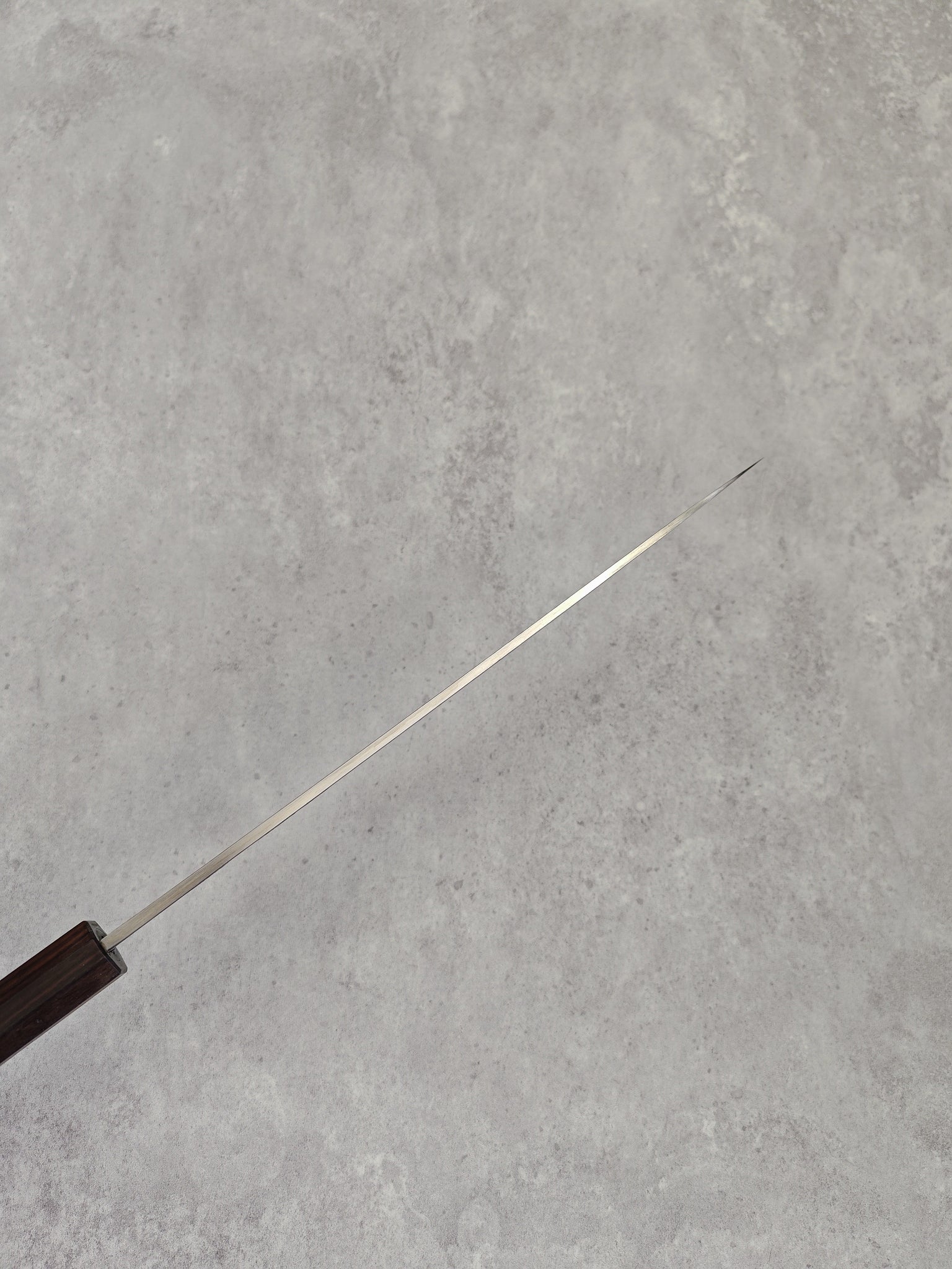 Compared to previously released gyuto series from Nakagawa-san, the edge profile on these has a little less curvature - making the tip slightly lower for a pointier feel.