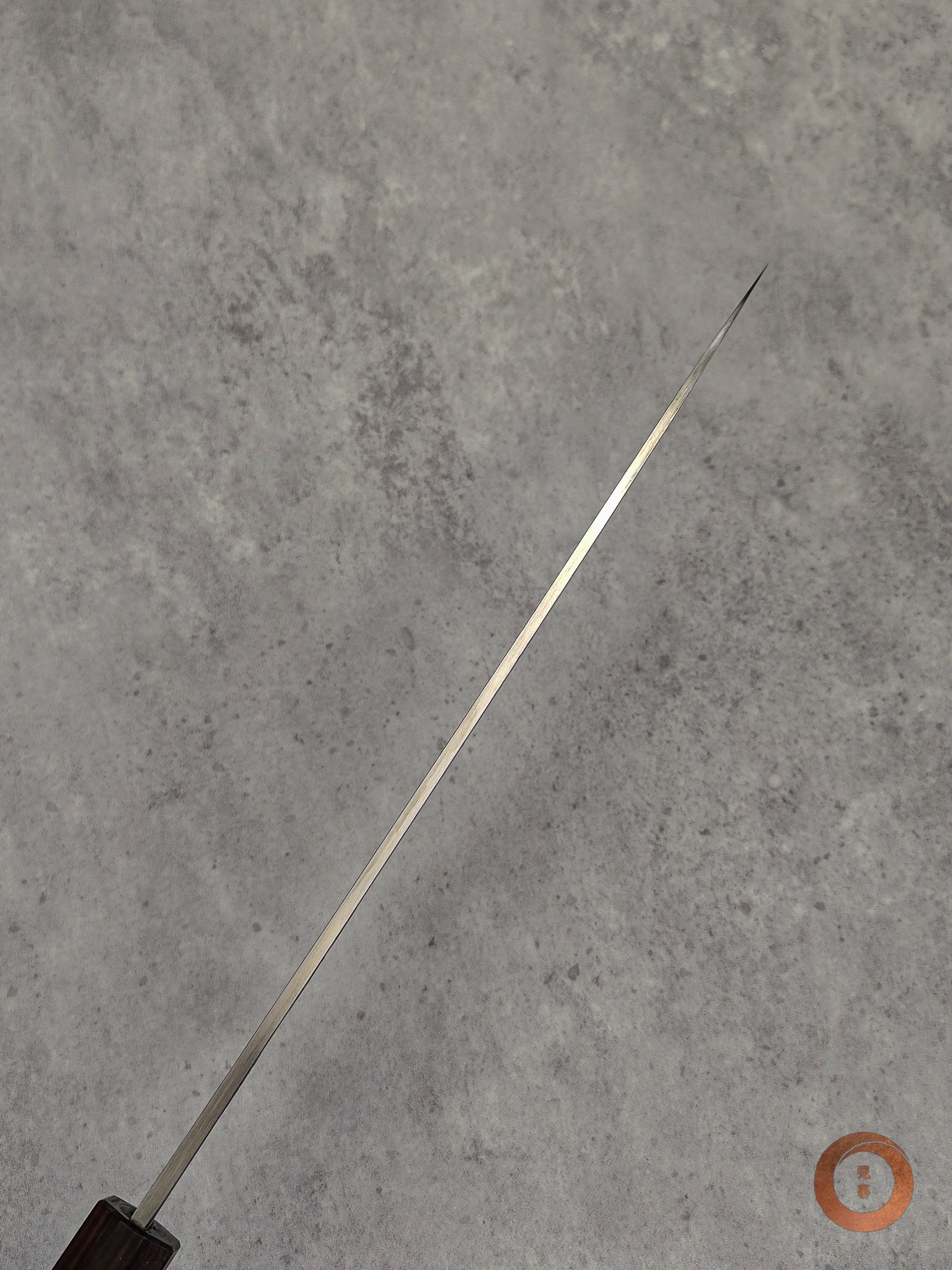 Compared to previously released gyuto series from Nakagawa-san, the edge profile on these has a little less curvature - making the tip slightly lower for a pointier feel.